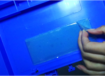 2、待冷卻後揭開,標簽袋和布基粘在一起與周轉箱分離。